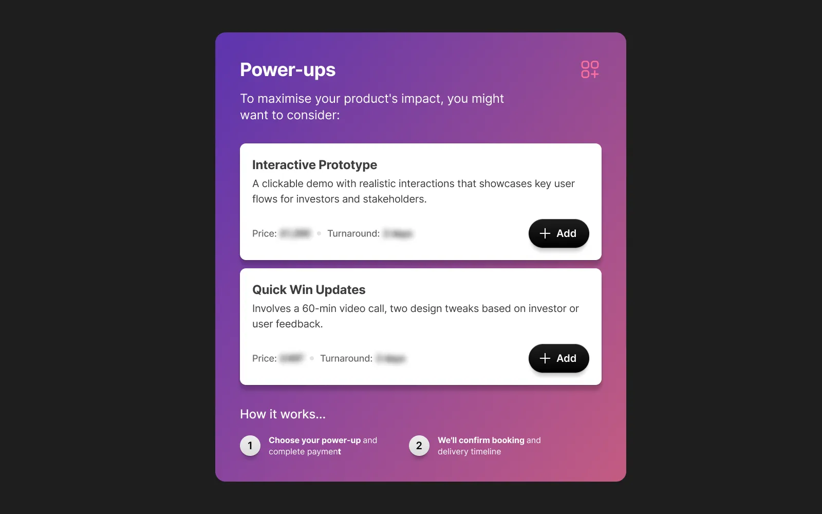 For example: not every client needs prototypes, they just need screens to get buy-in. So we offer prototypes after they’ve seen the designed screens and explain how it can tie everything together into a stronger narrative.
