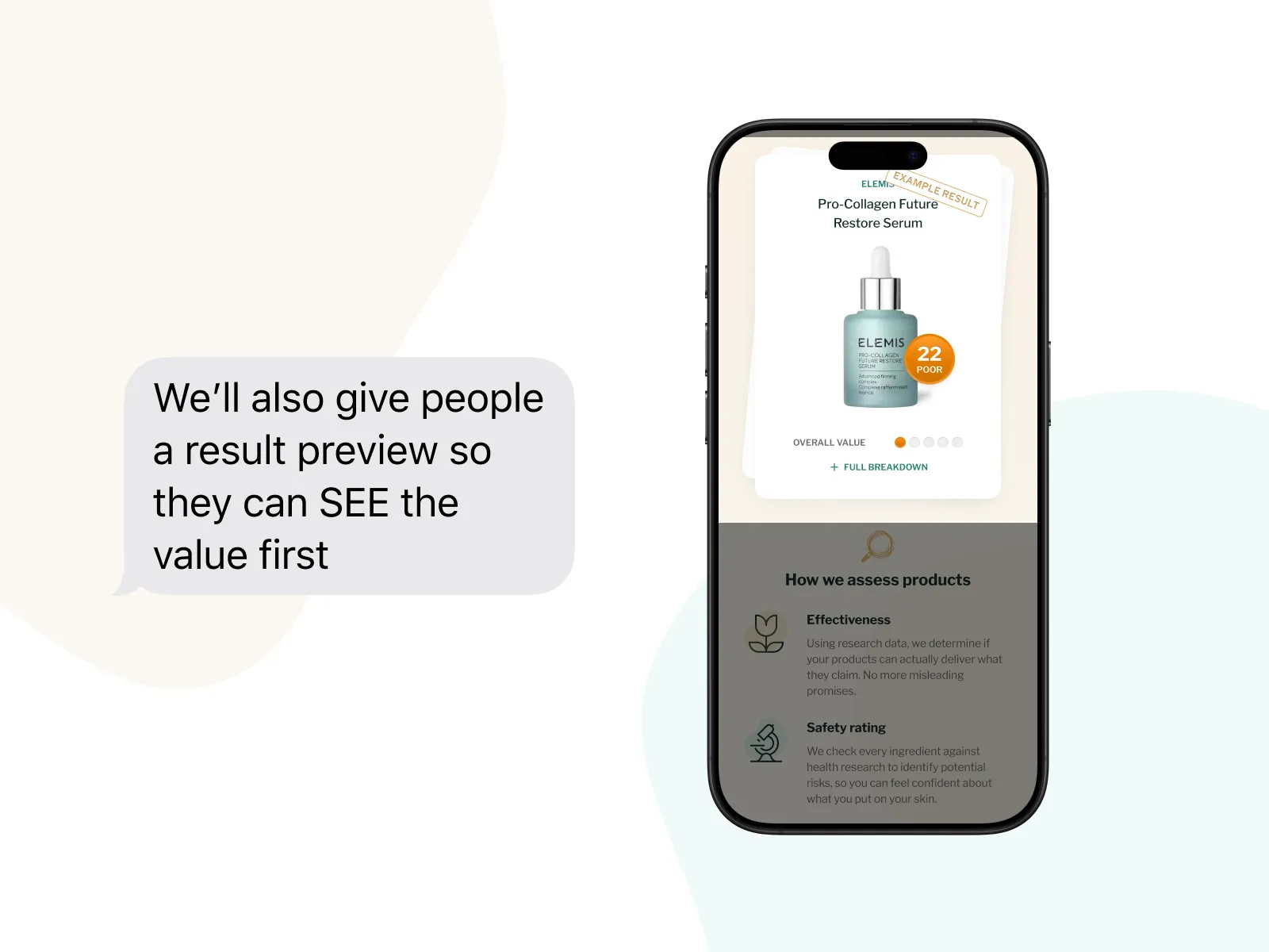 We created a simple results screen which gets users to value as soon as possible and reveals whether they could benefit from the service.