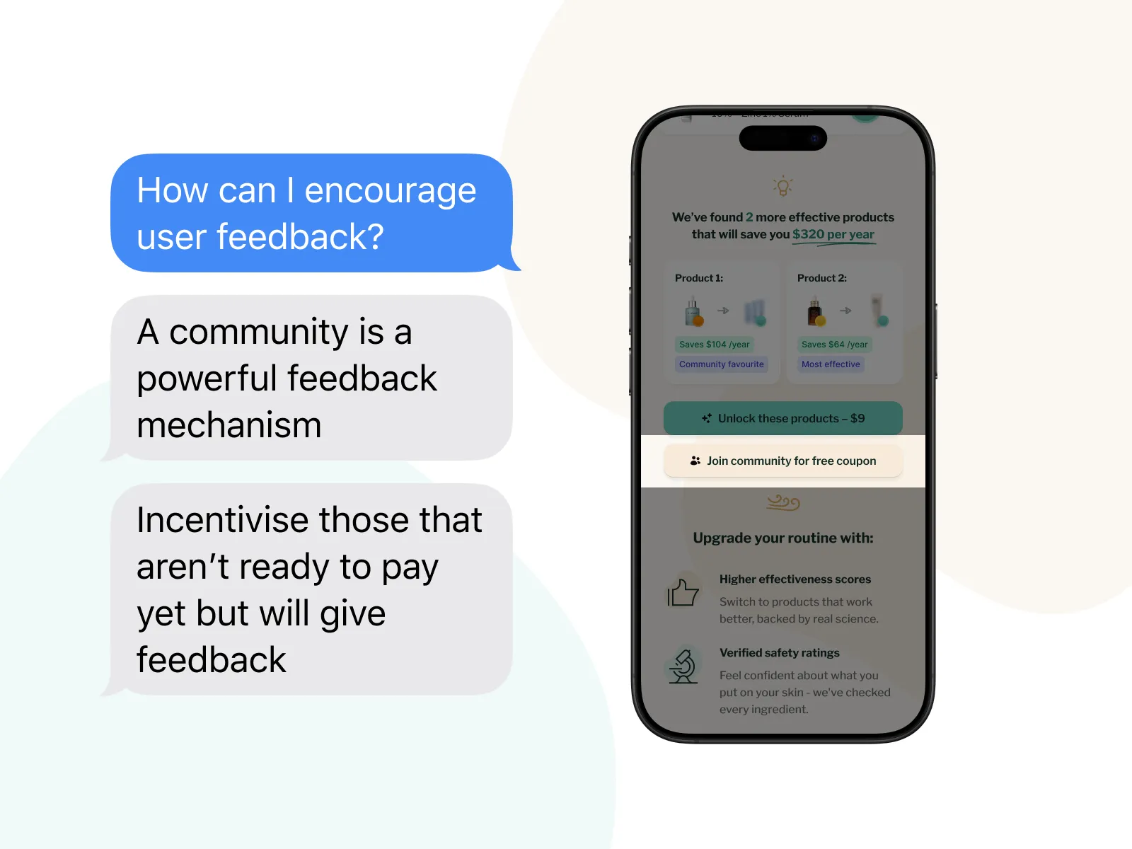 The value of feedback at this stage is huge, so we combined Bryans passion for community building with an incentive to join the community. Communities also build trust, social proof and on-going value.