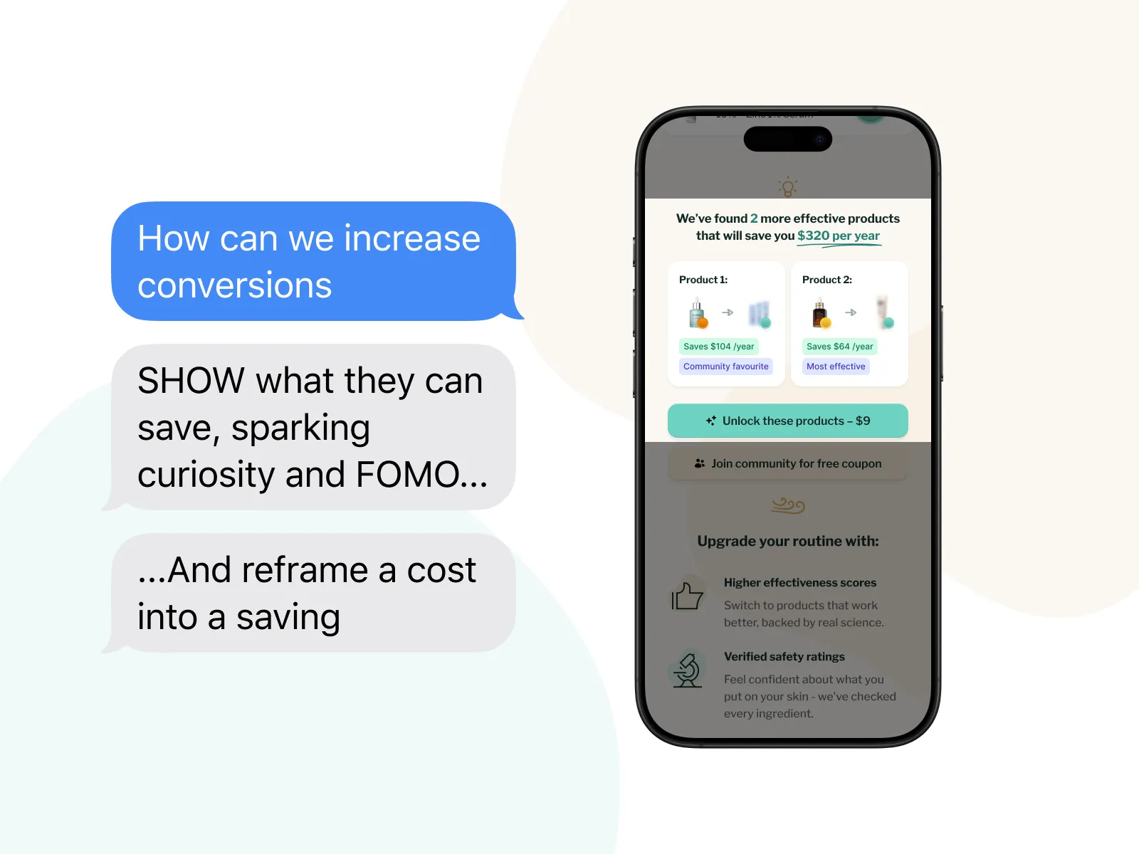 People looking for value don't want more cost. So we reframe the cost as a big yearly saving instead. $9 is then price anchored against the bigger yearly number.